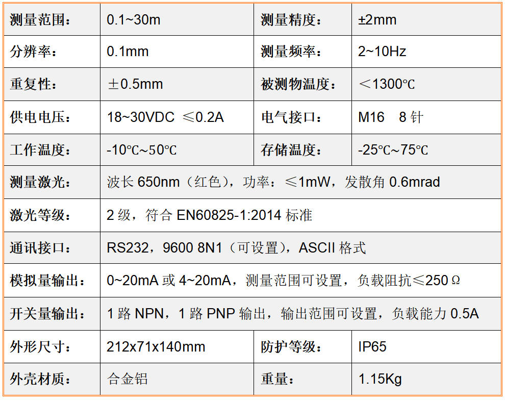 HMLDM-HY20A型冷藏激光器测距仪特别应用在普通原因下对冷藏物品的主导地位、厚度、极度停下侧量。通过全过程摹拟量工作电流和RS232通信网体例将数值传送数据到上位我们身体系并具备PNP和NPN双路打开量进入。● 常(🌳chang)温(wen)情(qing)况下丈量低温(wen)物体(ti),能坚(jian)持很(hen)高的(de)丈量精(jing)度和靠得(de)住性