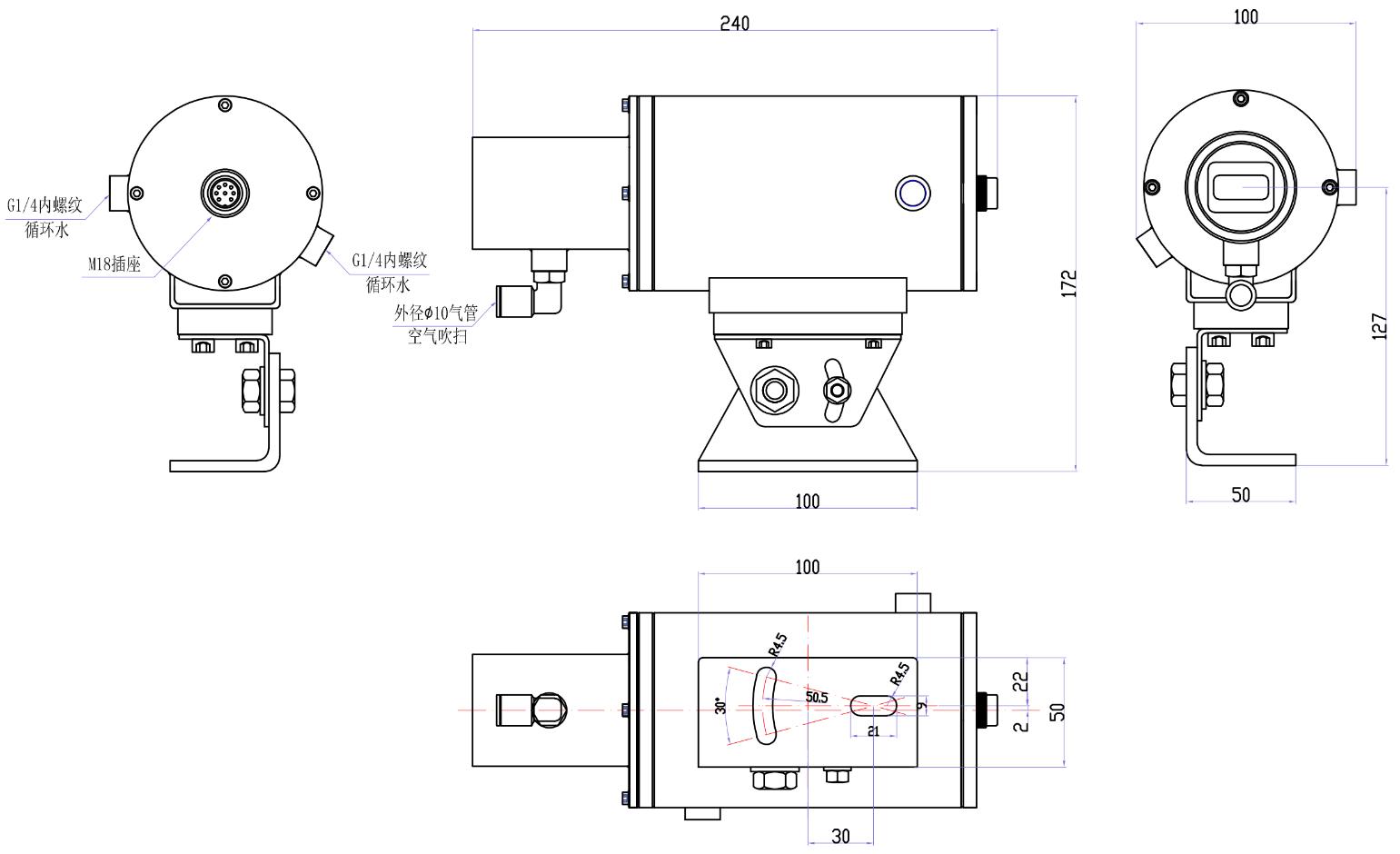 ● 摹拟量(liang)4~20mA,开关量(liang),RS232通信三种输入体例