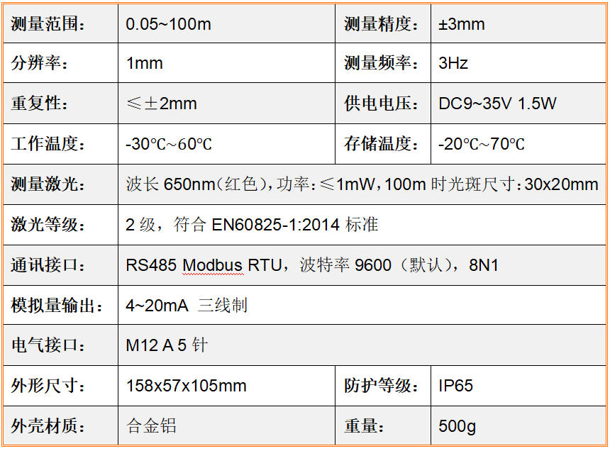 ● 规范的(de)RS485 Mo✤dbus RTU通信和谈,总线最多可(ke)毗(pi)连254台测距仪
