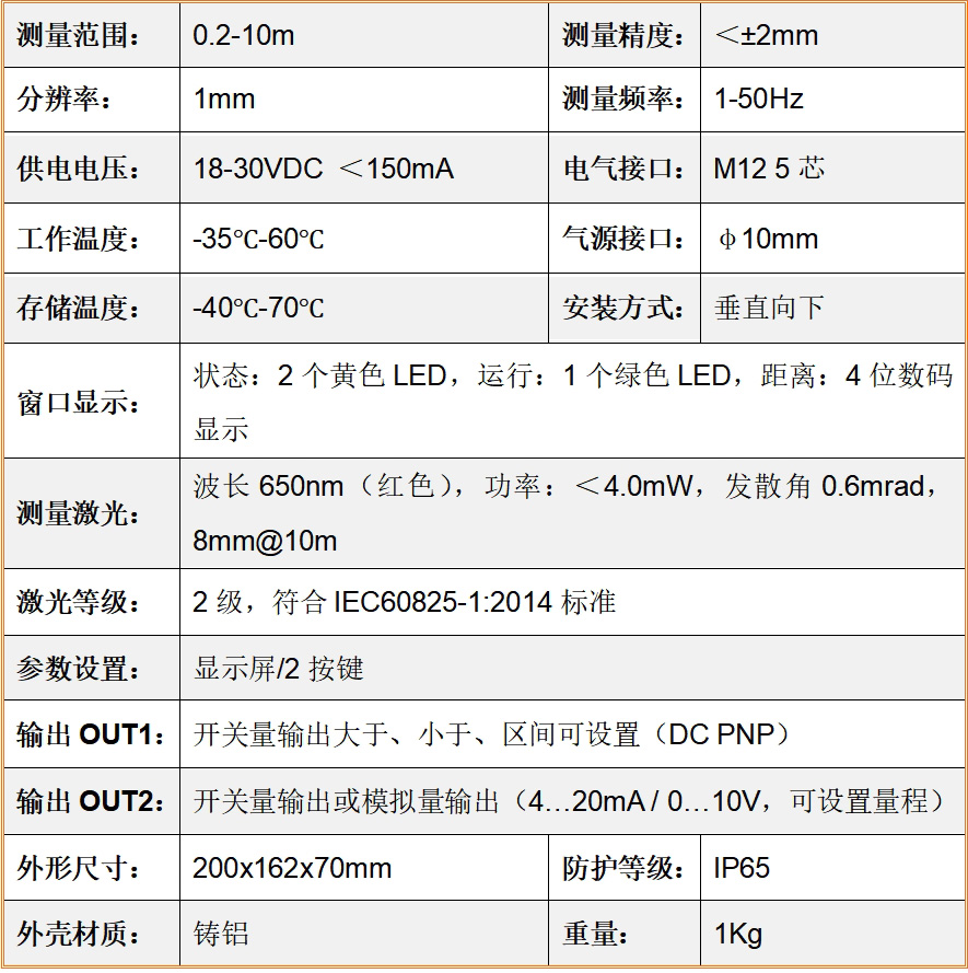 ● 丈量精度<±2mm,分辩率1mm